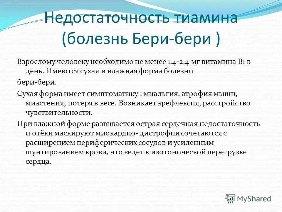 Авитаминоз витамина в1 болезнь бери бери.
