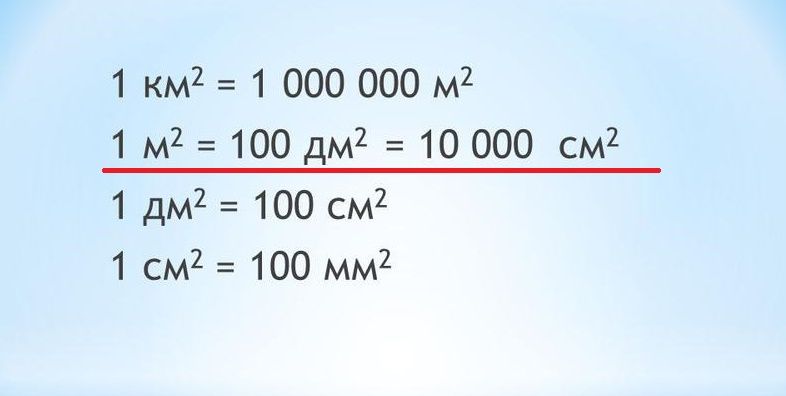 Единицы измерения площади 4 класс таблица.