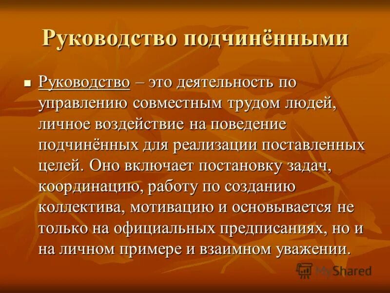 Модель влияния руководителя на подчиненного.
