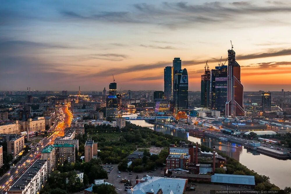 Москоу - Сити, небоскребы, река.