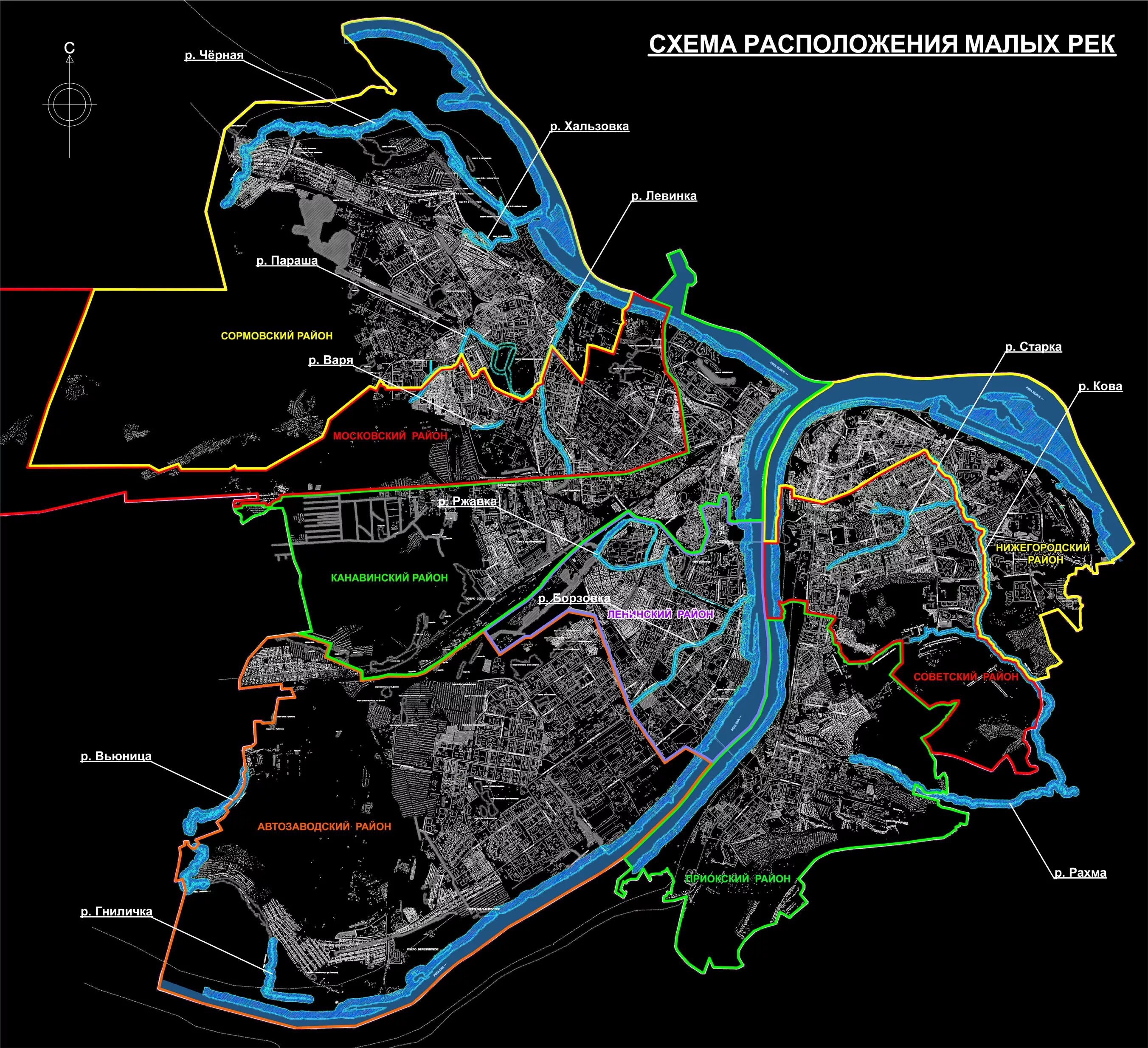 Географическая карта Нижнего Новгорода.