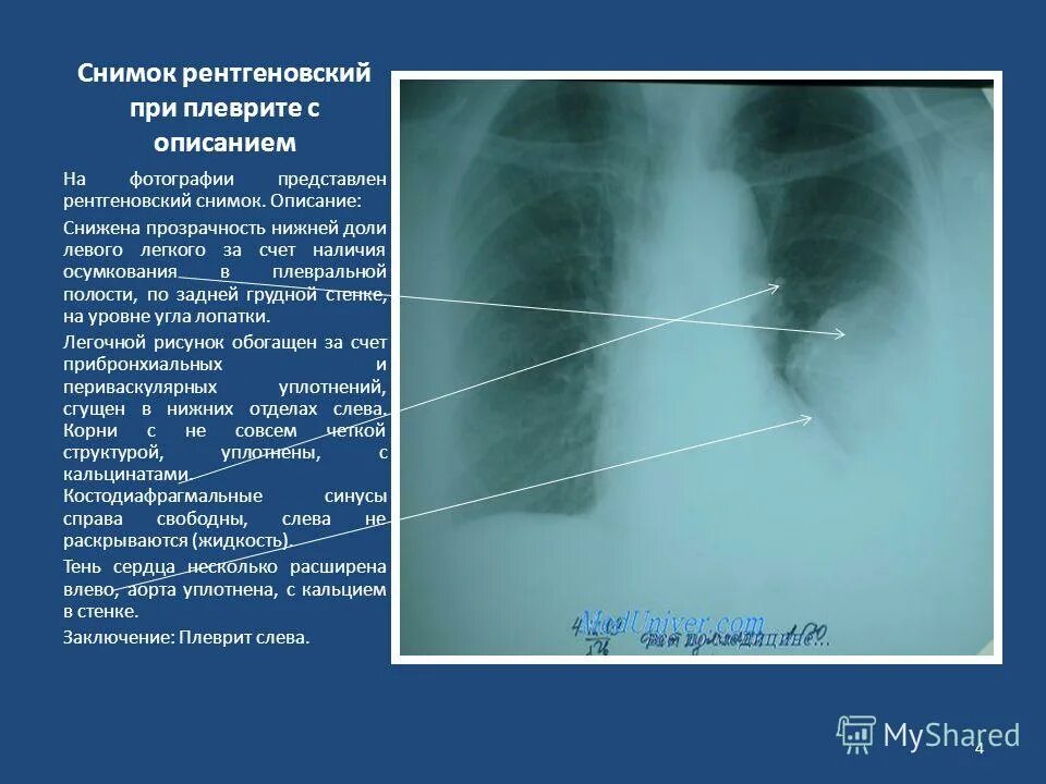 Плеврит на рентгене описание снимка.