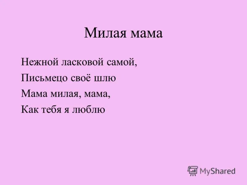 Текст песни милая мама.