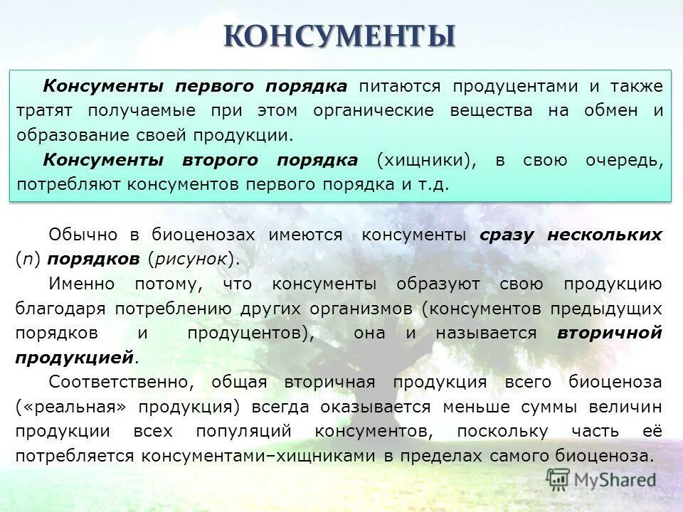 Консумент 1 порядка консумент 2.
