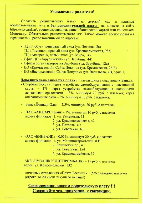 Родплата за детский сад.