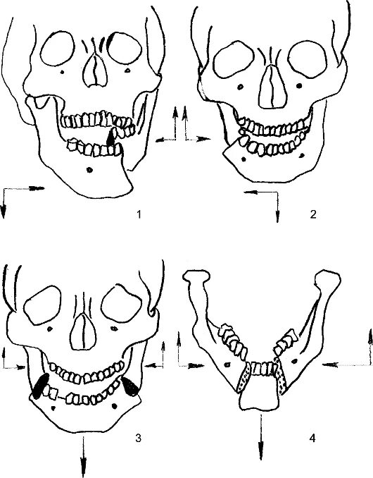 Типы смещения отломков при переломах.