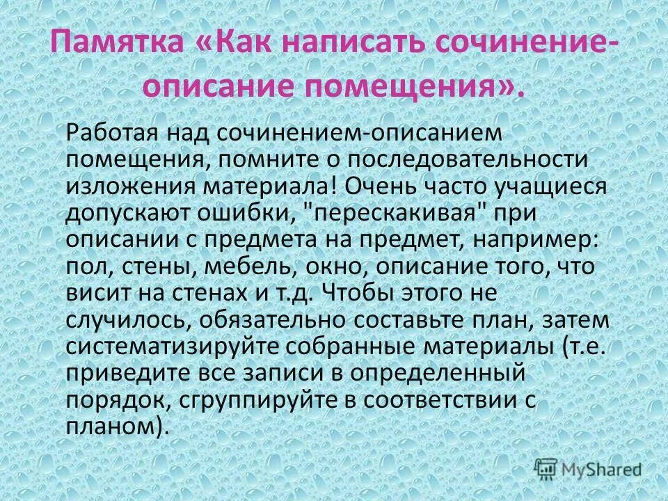 Сочинение описание помещения 6 класс моя комната по русскому языку.
