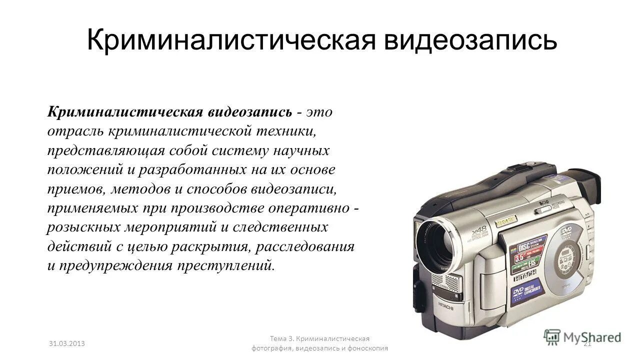 Средства и методы криминалистической видеозаписи.