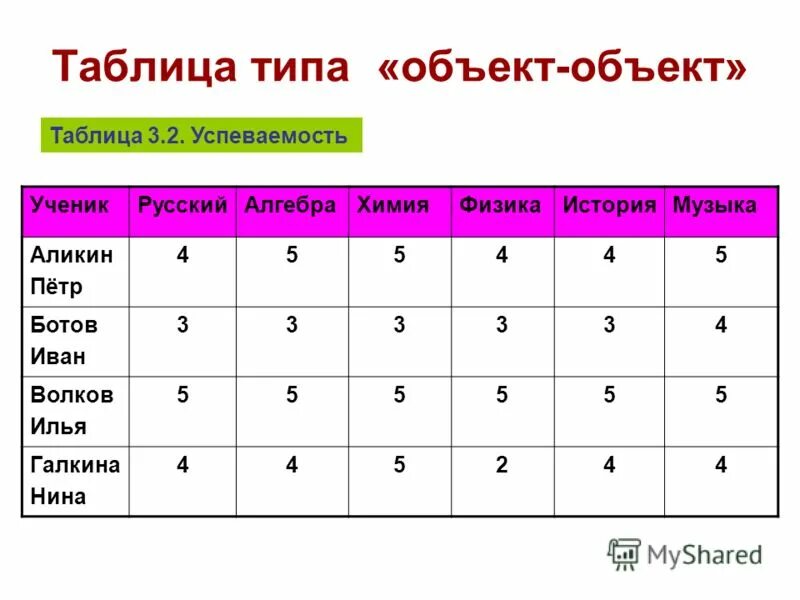 Таблица типа объект объект.