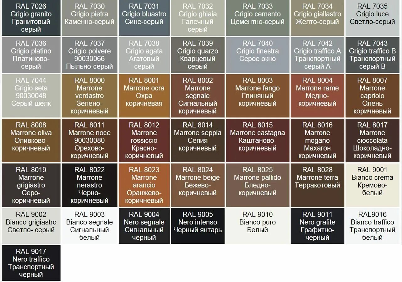 Рал шкала цветов.