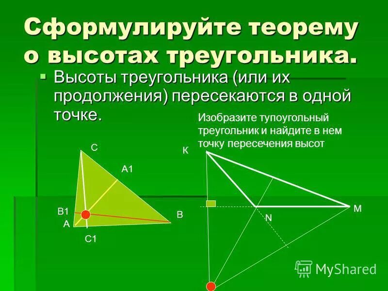Теорема о пересечении высот треугольника 8 класс.
