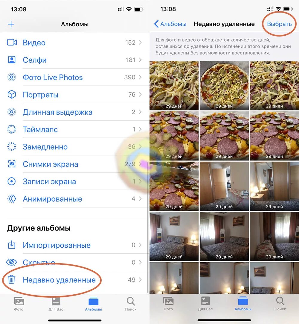 Удаленные фото на айфоне.
