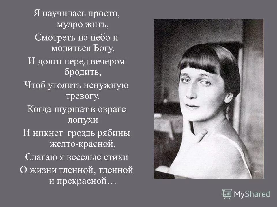 Стихотворение Ахматовой я научилась просто мудро жить.