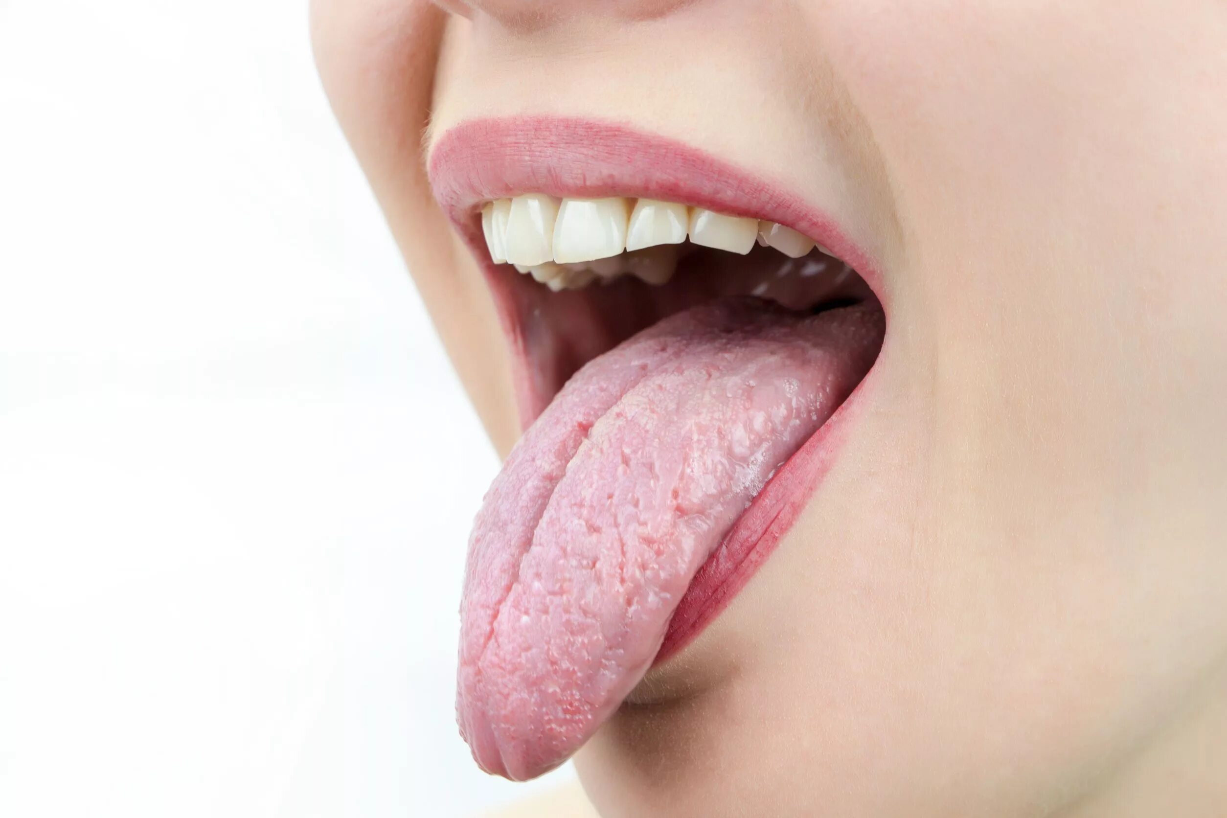 Открытый рот с высунутым языком.