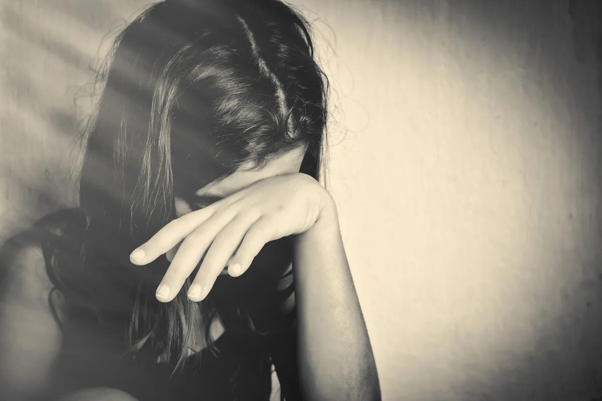 Девушка с прикрытым лицом волосами.